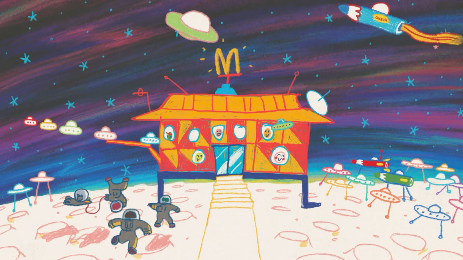 Blast off to Planet Happy Meal! For Crayola and McDonald’s Happy Meal collaboration, Nexus Studios, directors Shynola and Leo Burnett used real Crayola pencils to encourage kids to embrace their creativity.